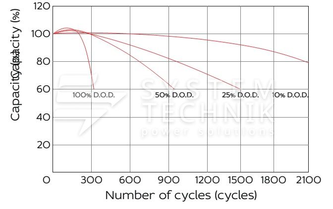 - Рекомендуемое напряжение заряда в циклическом режиме для 12В батареи: 13,5В-14,1В при 25ºС;