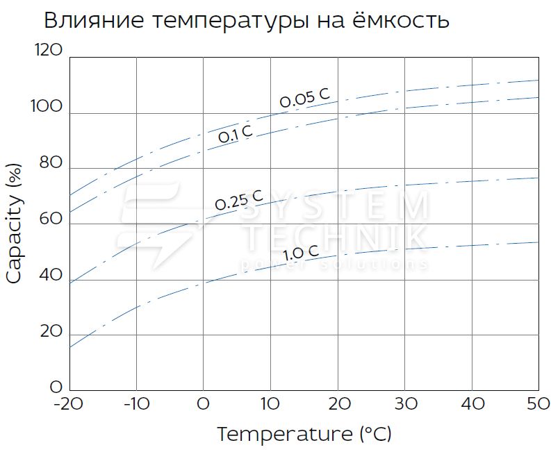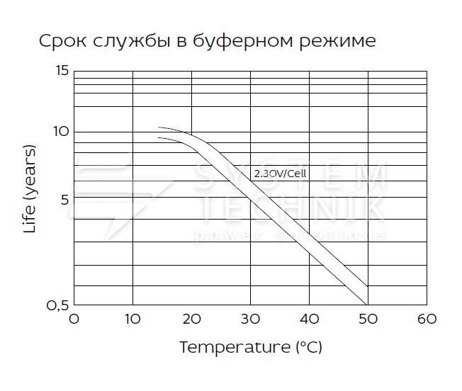 - Срок хранения без подзаряда: 6 мес. при 25°C;