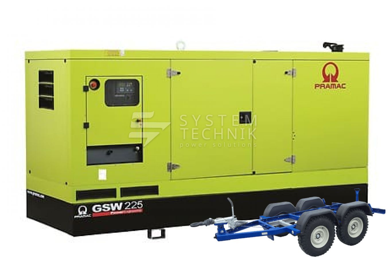 - Дизельный генератор Pramac GSW 225 I В кожухе на прицепе