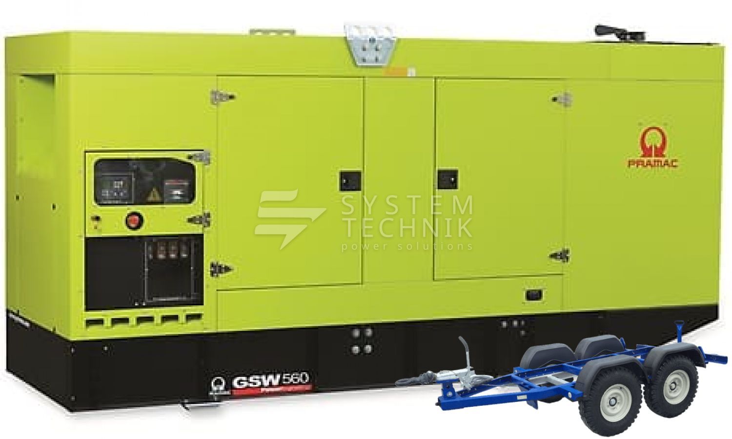- Дизельный генератор Pramac GSW 560 V 220V В кожухе на прицепе